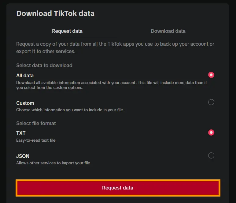 最可靠的方法是直接通过TikTok请求你的全部数据,这避免了使用任何第三方工具可能带来的风险或不可靠性。